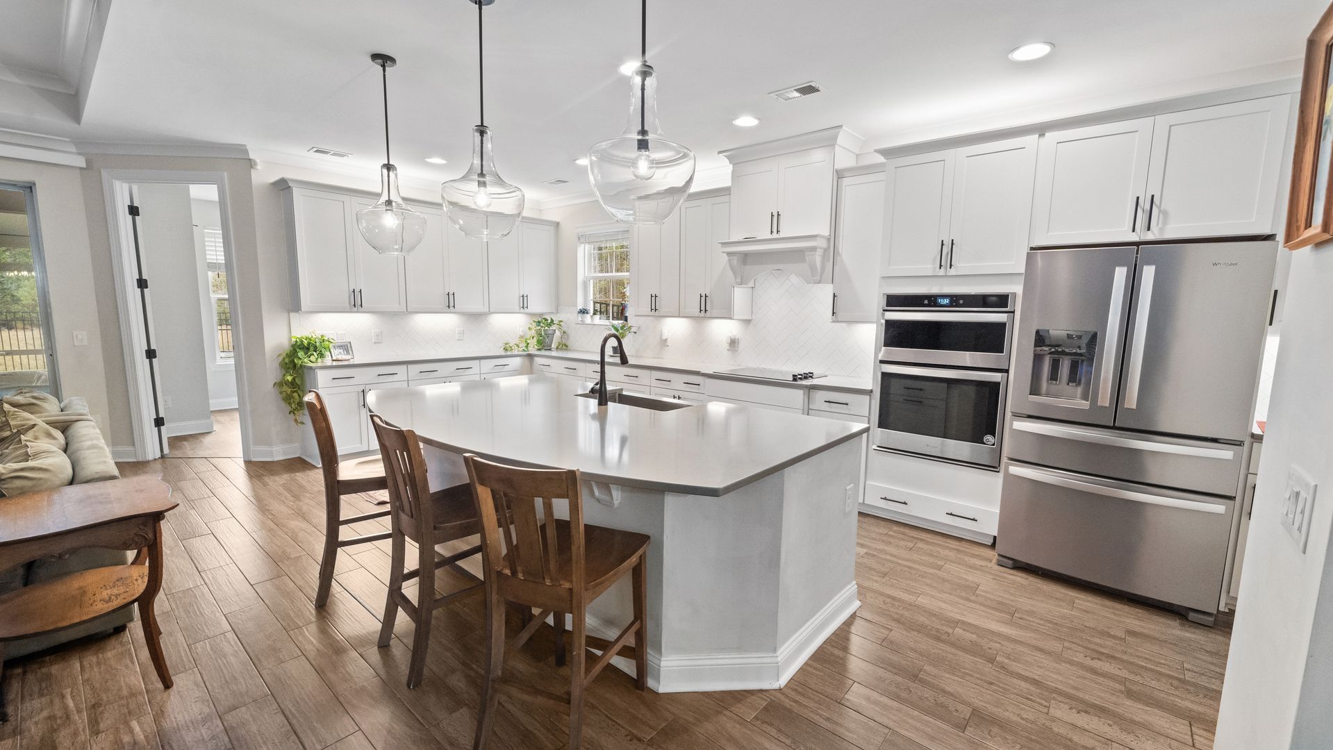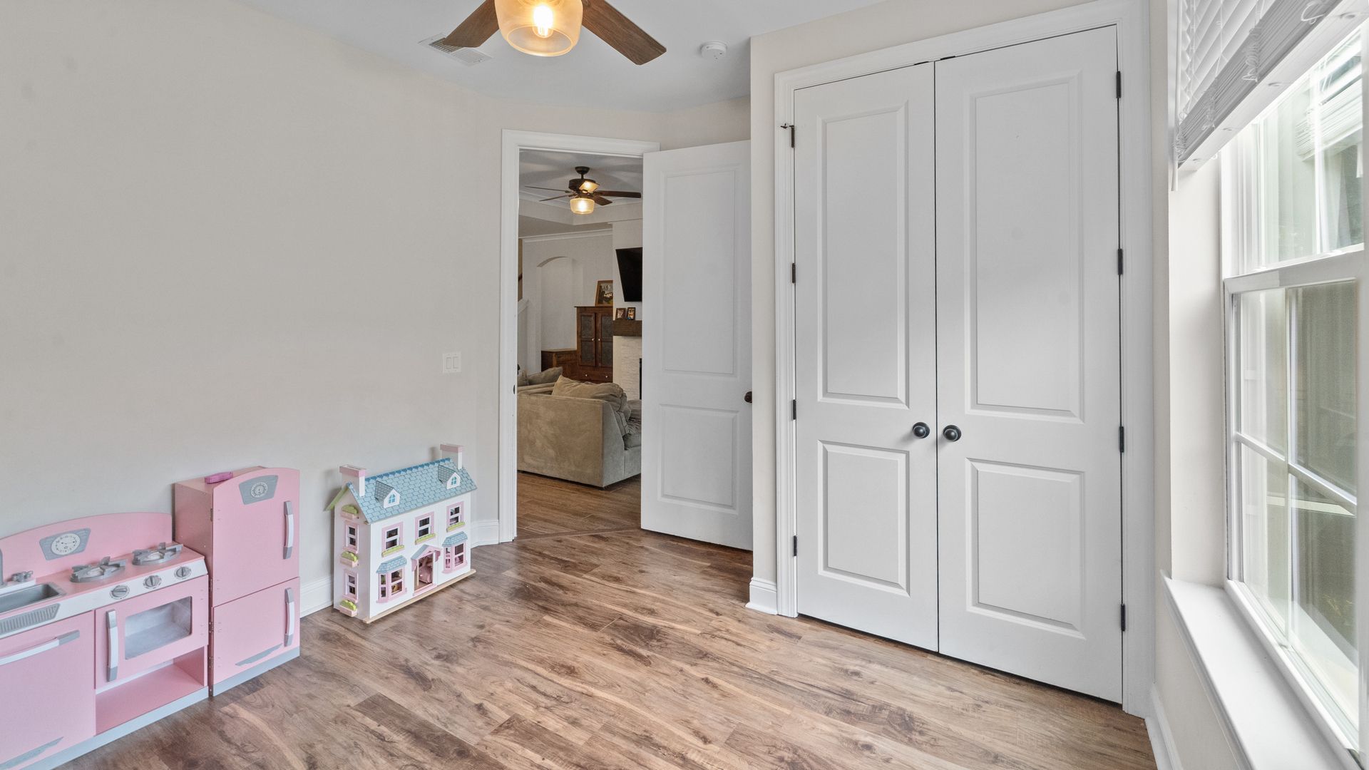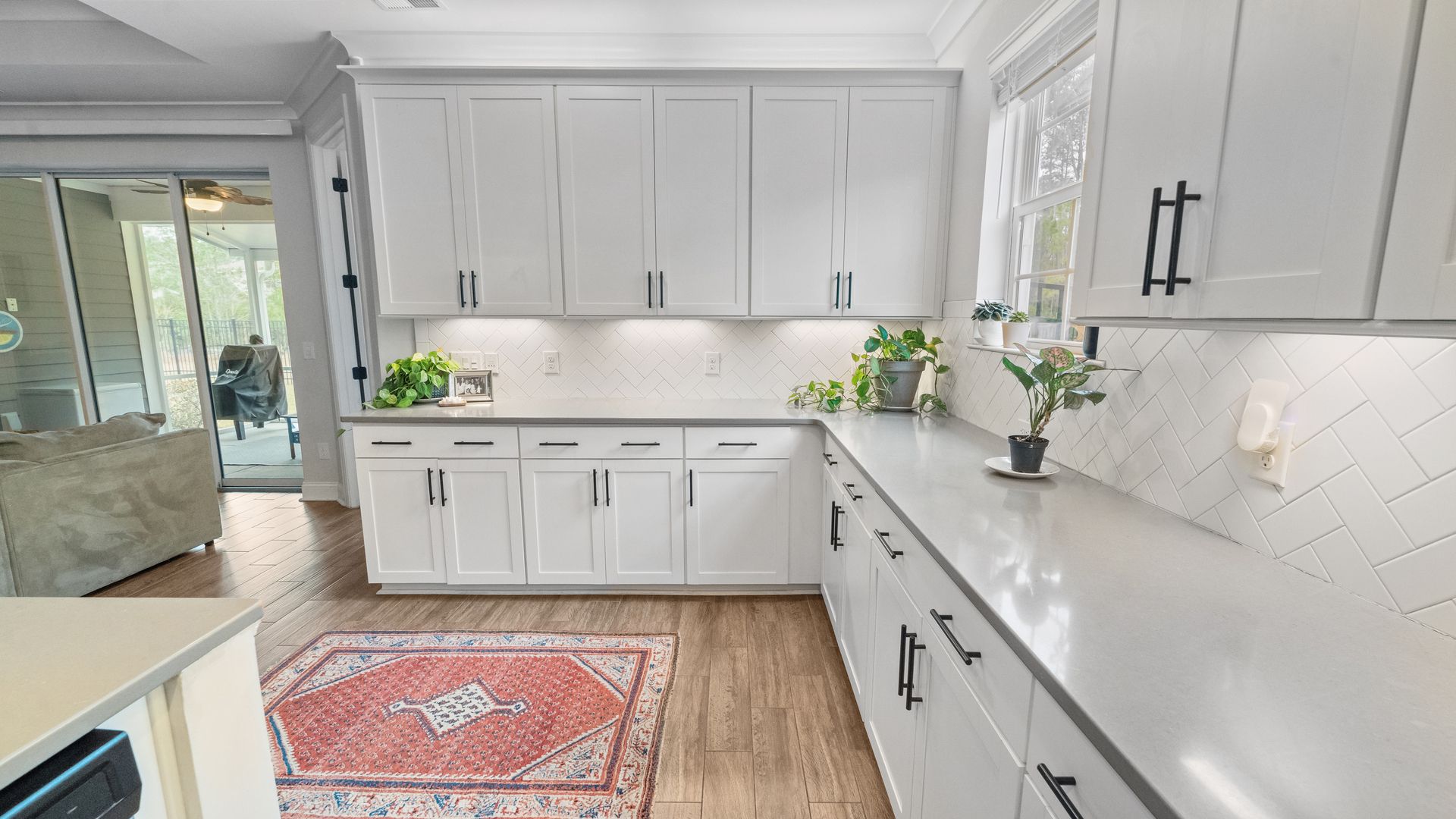 Spacious 6-bedroom, 3-bathroom waterfront home in desirable Richmond Hill, GA! This home features an open-concept floor plan with 5 bedrooms on the main level, including an oversized primary suite with luxurious bath and walk-in closet. The kitchen includes quartz countertops, farmhouse sink, and extended cabinetry, perfect for family living. Upstairs offers a large 6th bedroom with walk-in closet and full bath—ideal as a bonus or guest suite. Enjoy a screened porch, private waterfront lot, and fenced backyard. Perfect for families seeking a modern, spacious rental home near Savannah. Rare 6-bedroom waterfront opportunity!