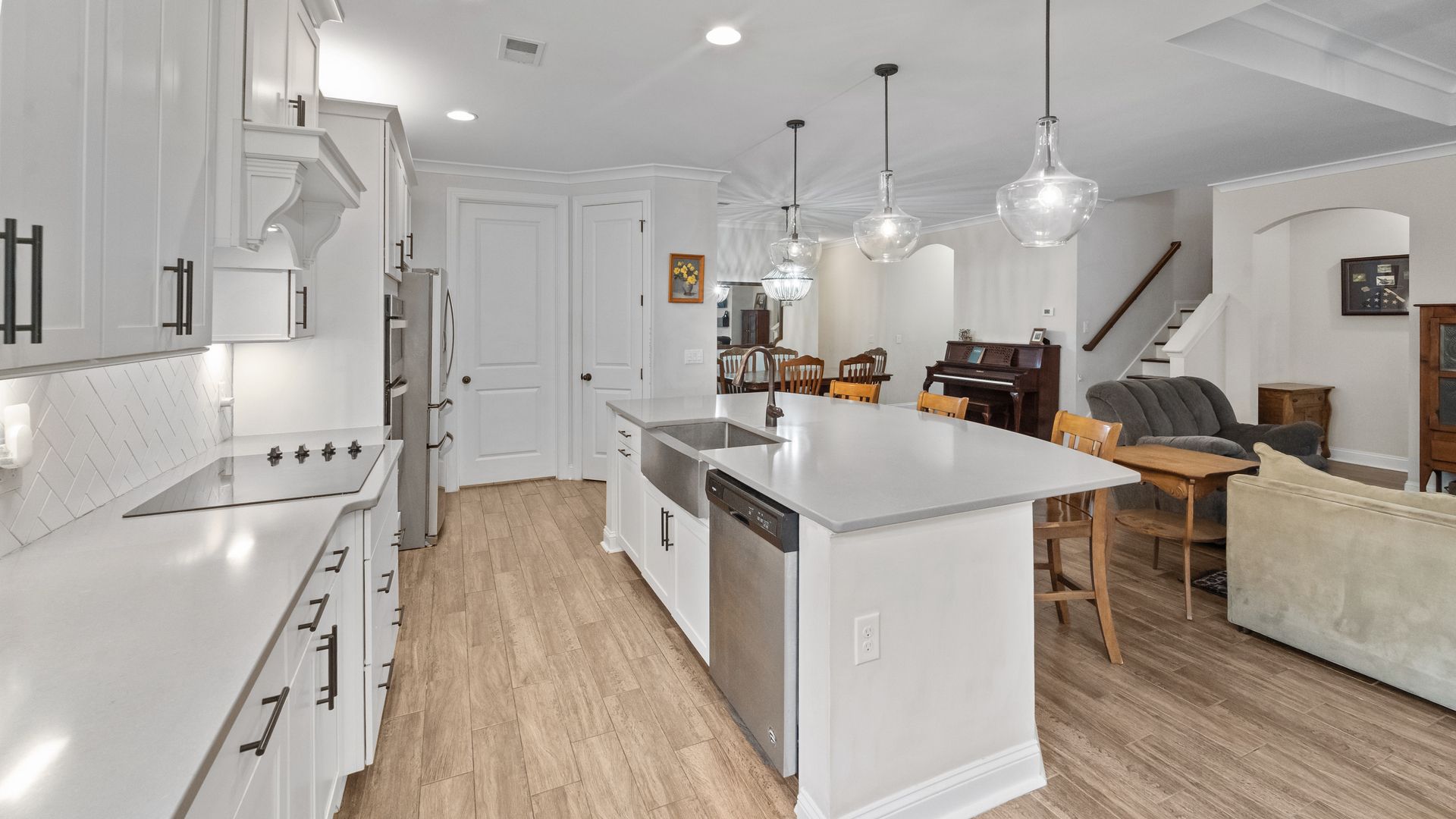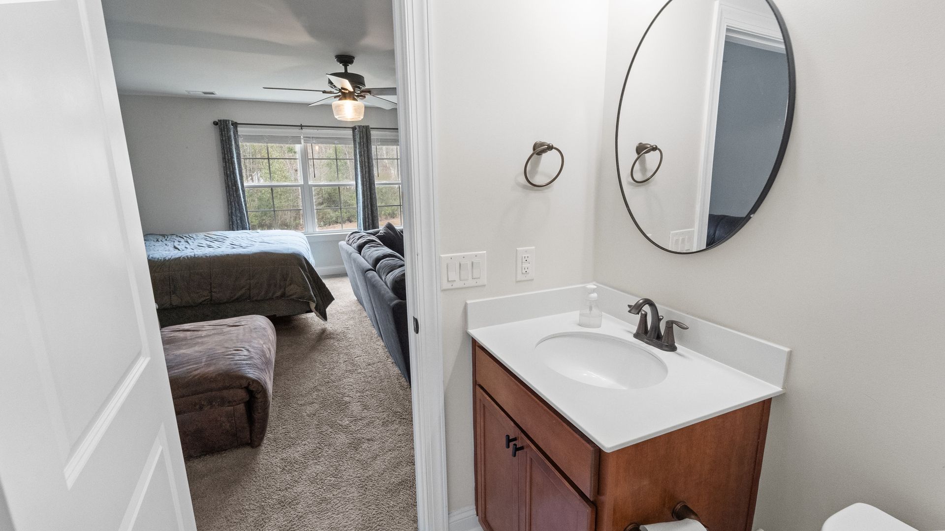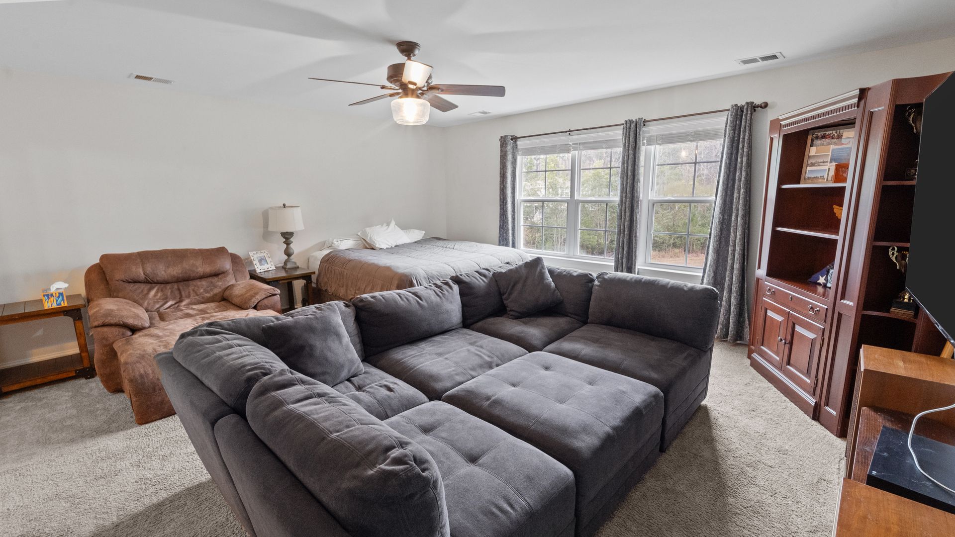 Spacious 6-bedroom, 3-bathroom waterfront home in desirable Richmond Hill, GA! This home features an open-concept floor plan with 5 bedrooms on the main level, including an oversized primary suite with luxurious bath and walk-in closet. The kitchen includes quartz countertops, farmhouse sink, and extended cabinetry, perfect for family living. Upstairs offers a large 6th bedroom with walk-in closet and full bath—ideal as a bonus or guest suite. Enjoy a screened porch, private waterfront lot, and fenced backyard. Perfect for families seeking a modern, spacious rental home near Savannah. Rare 6-bedroom waterfront opportunity!