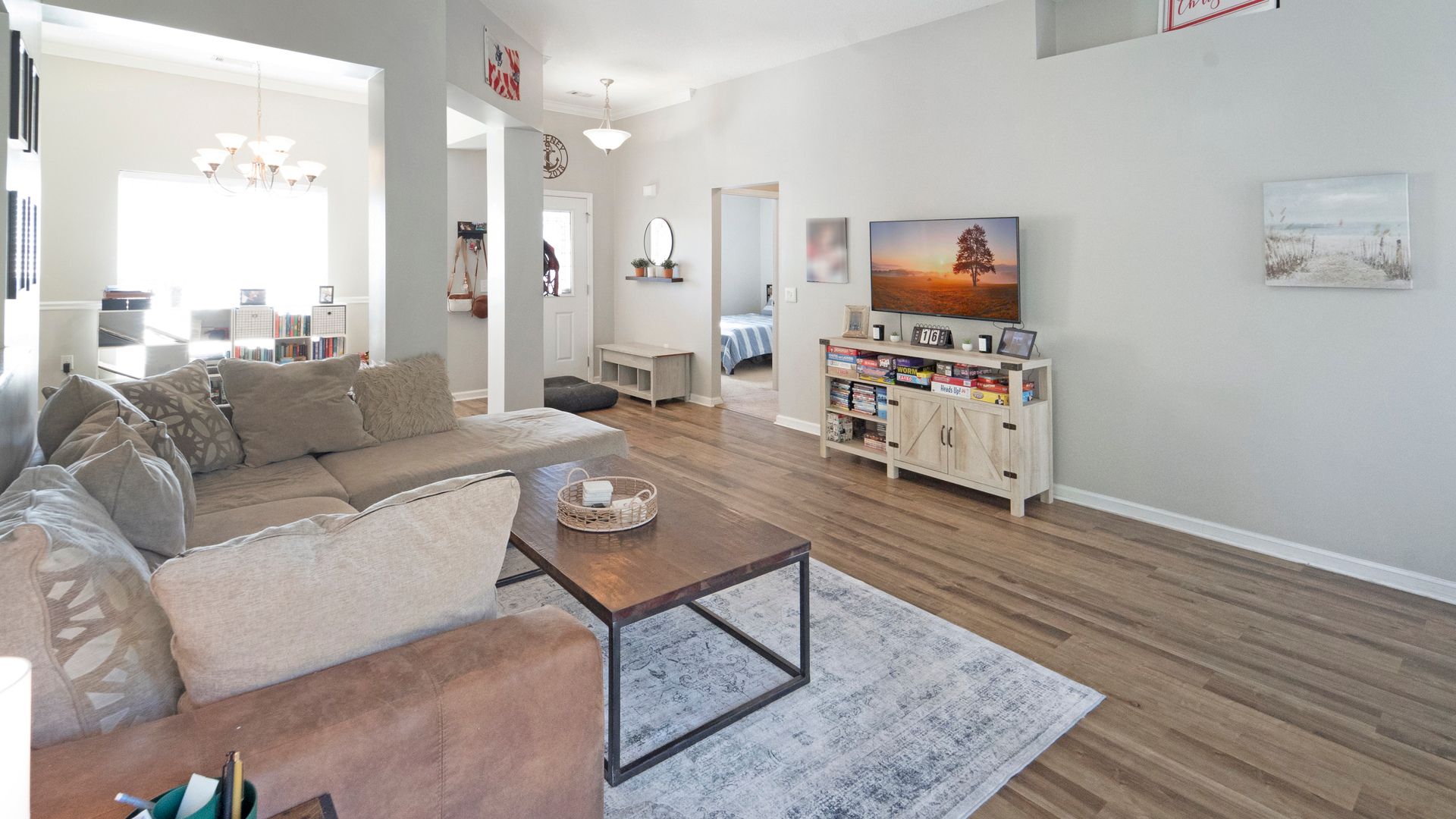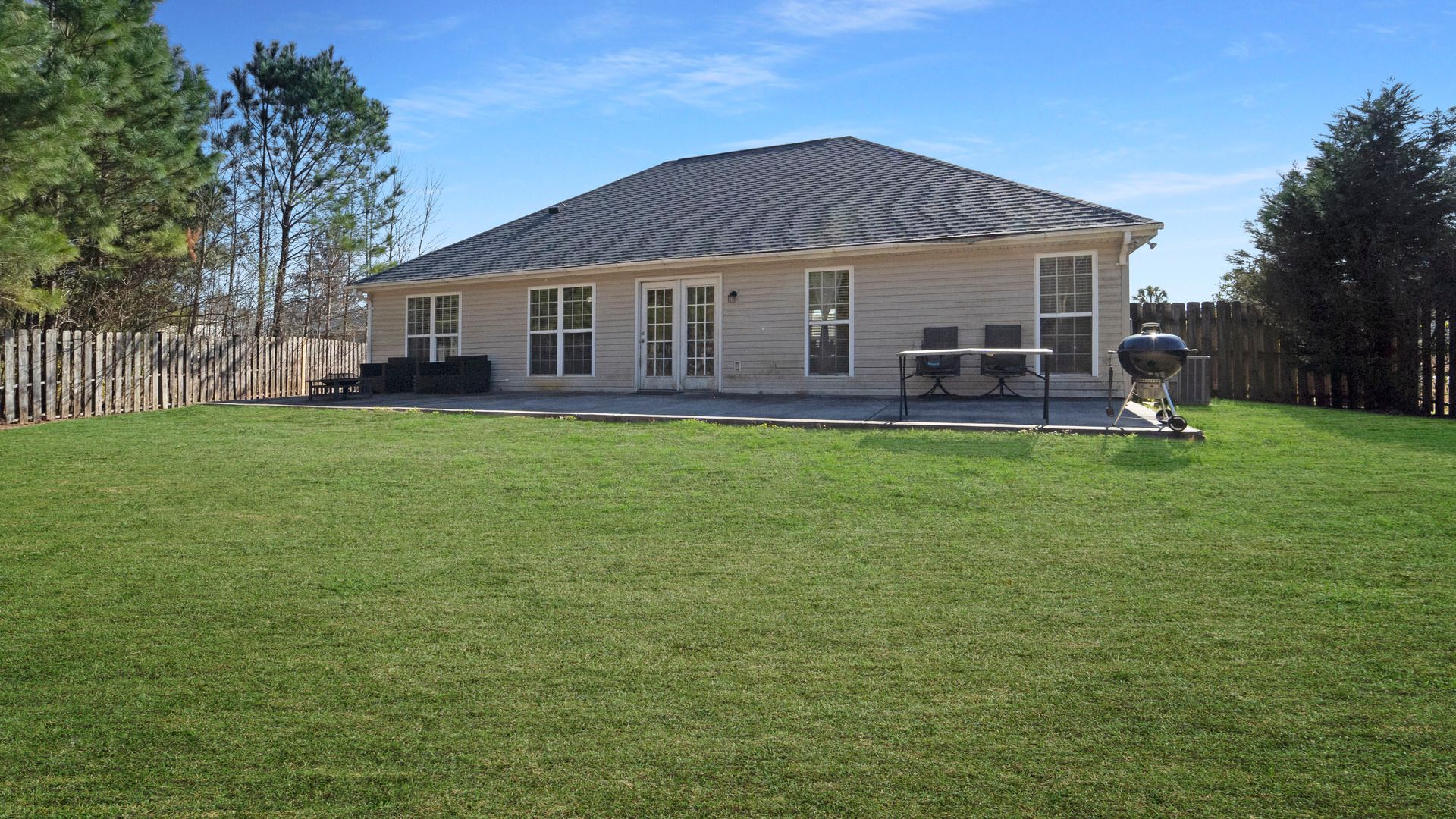 Charming 3‑bed, 2‑bath ranch in Sweetwater Station! Open living areas with gorgeous wood laminate flooring flow into a modern eat-in kitchen with granite counters, dark-stained cabinets, and a stylish backsplash. French doors lead to a large cement patio and fully fenced 1/3-acre backyard—ideal for entertaining and outdoor fun. Enjoy the neighborhood fishing pond, plus quick access to parks, schools, shopping, and the highway. This home combines comfort, style, and an ideal location for your next home!