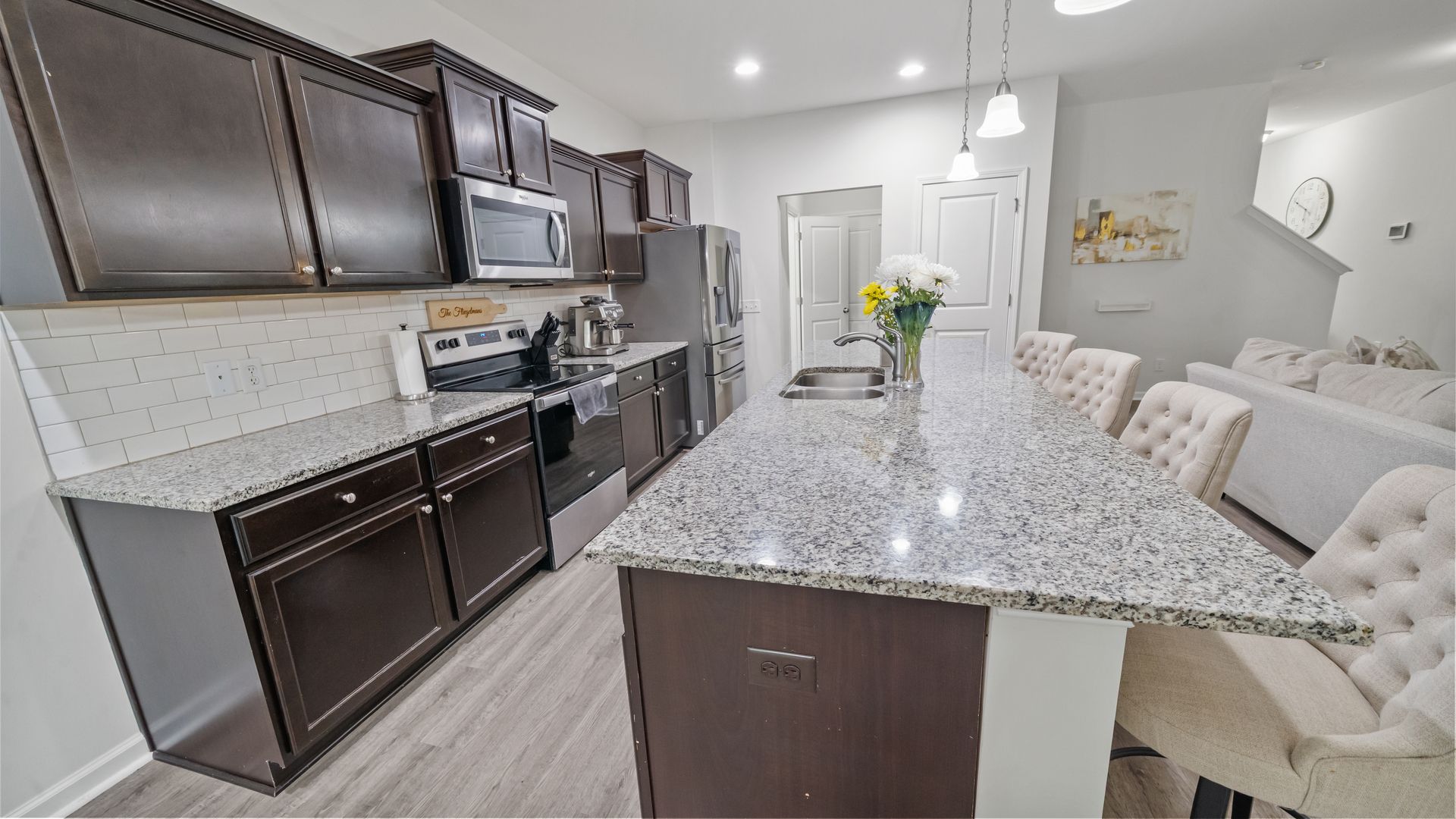 Welcome to 81 Bellasera Way in Richmond Hill, GA, located in the desirable The Commons community. This 3-bedroom, 2.5-bath home offers 2,027 sq ft with an open-concept layout and spacious living room featuring a fireplace. The kitchen includes stainless steel appliances, granite countertops, and a large island perfect for entertaining. Upstairs, the primary bedroom features a tray ceiling, dual vanities, separate shower, and walk-in closet. All bedrooms are located upstairs along with a spacious loft. Enjoy the covered back patio overlooking wooded views and a mature oak tree. Community amenities include a zero-entry pool, pavilion, fitness center, fire pits, and hammock stations. Convenient to Fort Stewart, I-95, Gulfstream, Savannah, shopping, and dining.
