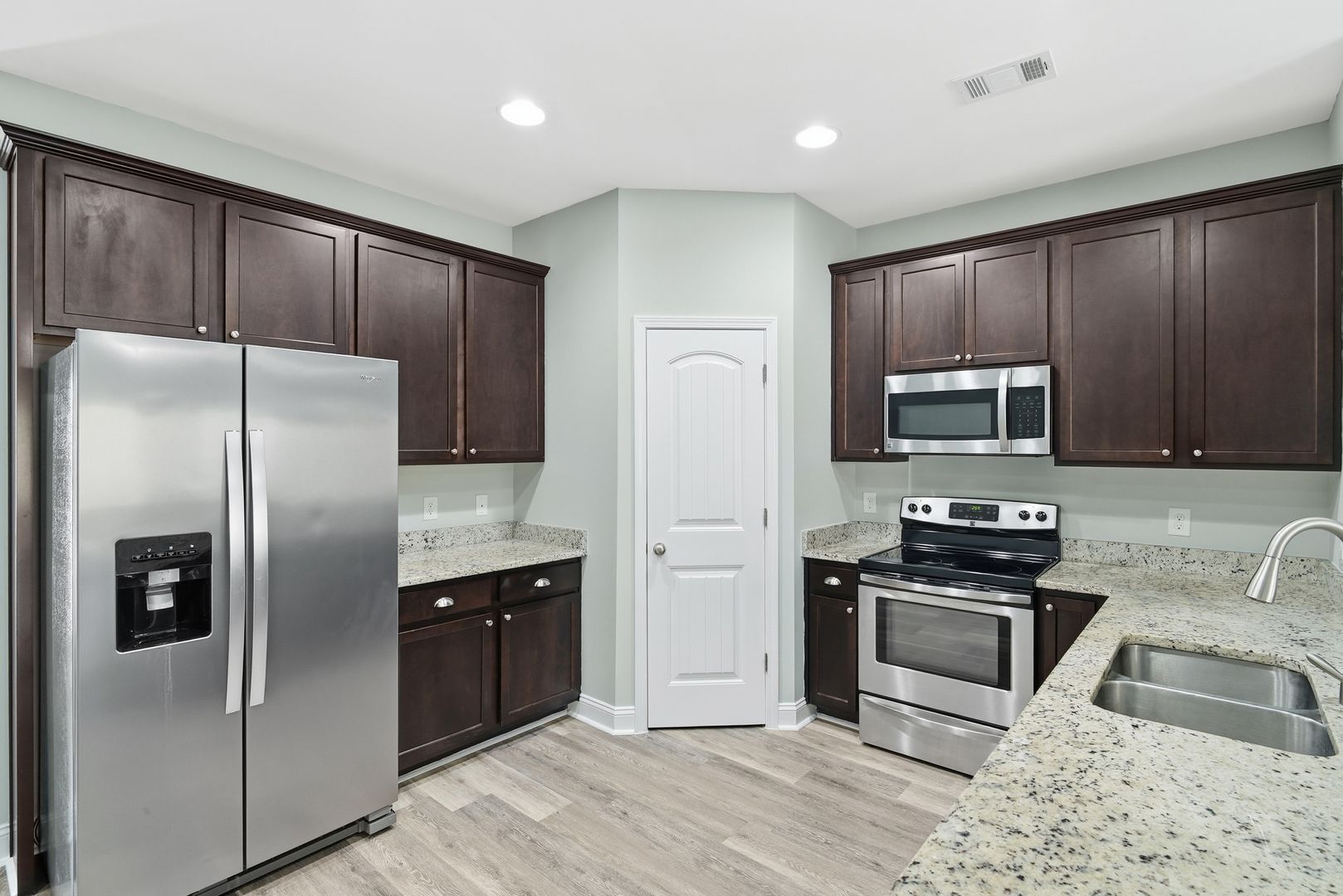 Enjoy modern comfort and convenience at 210 Kepler Loop in Richmond Hill. This 3-bedroom, 2.5-bath townhome features a kitchen with granite countertops and a pantry, opening to a bright living area with access to a private patio and fenced backyard with peaceful wooded views. Upstairs, the spacious primary suite offers a tray ceiling, dual vanities, and a walk-in closet, along with two additional bedrooms and a conveniently located laundry area. An attached 1-car garage with automatic opener adds everyday convenience. Newly completed city roadway and sidewalks enhance accessibility and curb appeal. Ideally located near Hwy 17 and I-95 for quick commutes to Savannah, Fort Stewart, and Pooler.