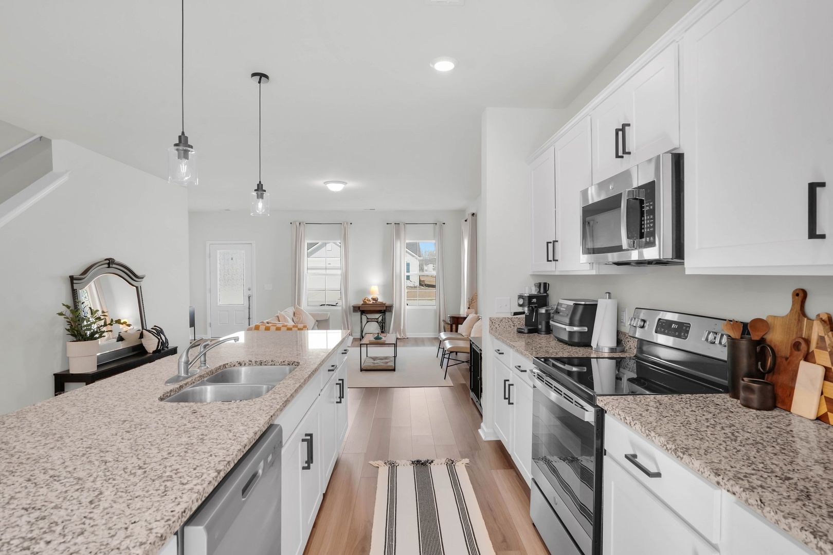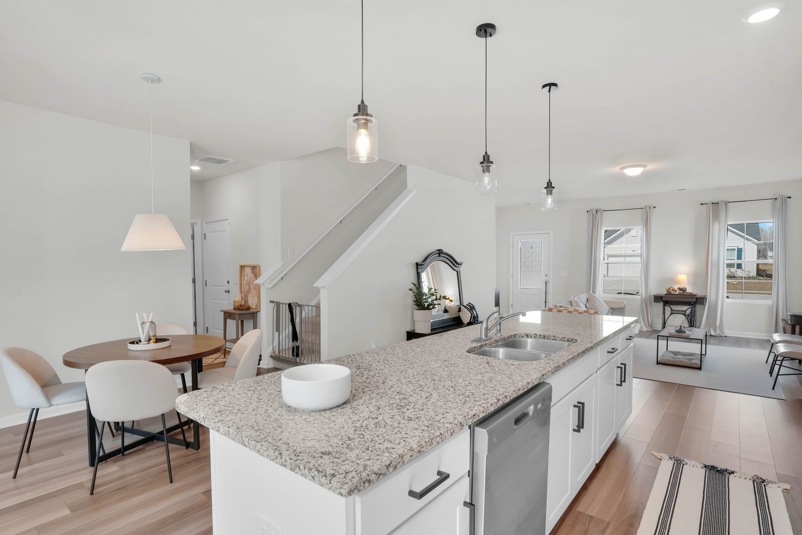 Discover this beautifully maintained 5-bedroom, 2.5-bath home in the heart of Richmond Hill. Step inside to luxury vinyl plank flooring that flows into an open-concept kitchen and family room with an eat-in dining area. A versatile bonus room on the main floor is perfect for a home office or playroom. Upstairs, a spacious loft accompanies four bedrooms—two with walk-in closets—and a convenient laundry room. The primary suite features a vaulted ceiling, walk-in closet, dual vanities, and a large walk-in shower. Enjoy relaxing on the charming covered front porch. Located near schools, shopping, and dining. Schedule your tour today—this one won't last!